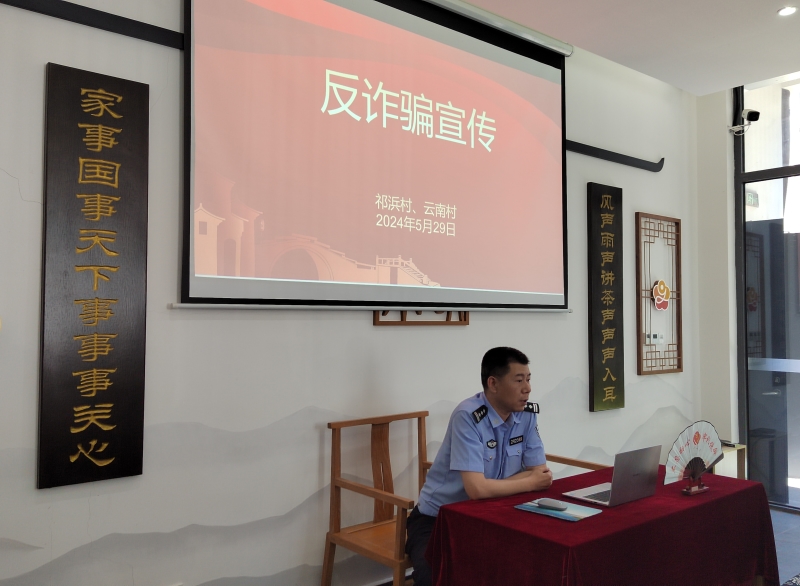 在乡村振兴讲习所,周庄镇派出所社区民警刘晓强为到会村民作反诈宣传讲座。通过对“虚假投资理财诈骗” “刷单返利诈骗” “冒充电商物流客服诈骗” “网络贷款诈骗”等真实案例分析,剖析每一个案件的作案手法,社区民警提醒群众认清诈骗本质,提高反诈骗意识。活动现场还发放宣传折页,以另一种形式做好反诈骗宣传工作。